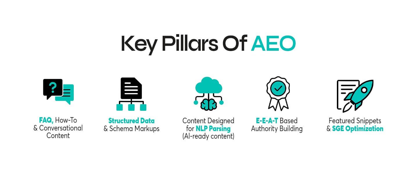 AEO ensures your content is structured, discoverable, and optimized for AI-powered engines that summarize and recommend, not just index.